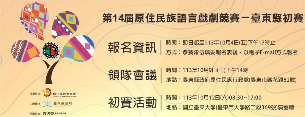 第14屆《原住民族語戲劇競賽-臺東縣初賽》開始報名囉~!