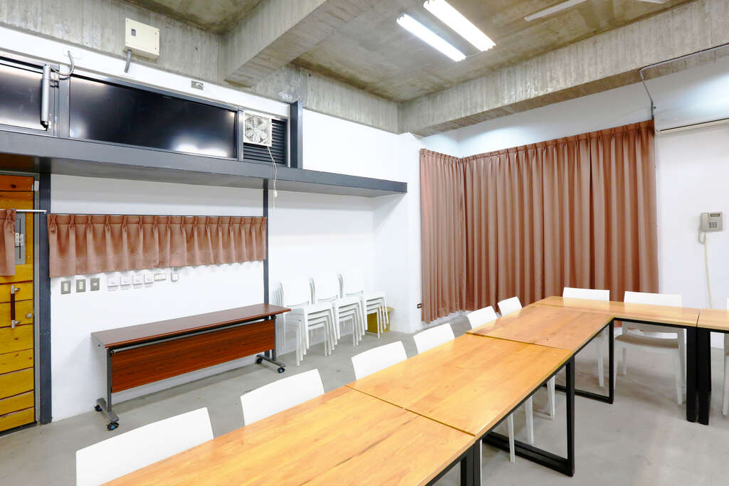 本聚落設置會議室一間,僅於六、日期間提供有需要之單位租借辦理課程、會議、講座等使用。