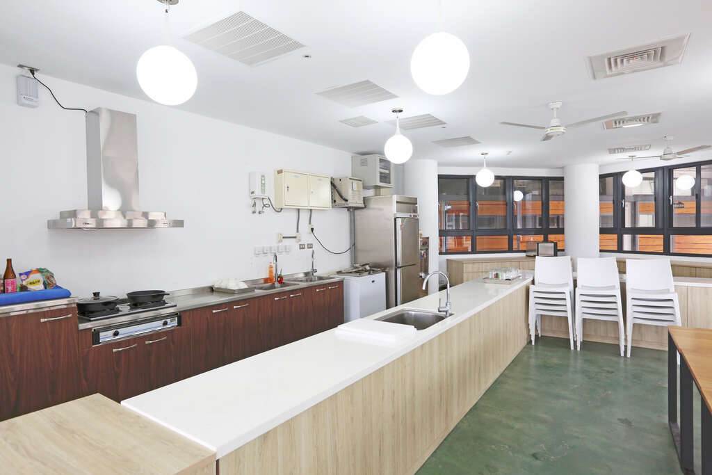 烹調器具、飲水機、冰箱、冷凍櫃、流理臺、櫥櫃、桌椅、冷氣、烤箱等