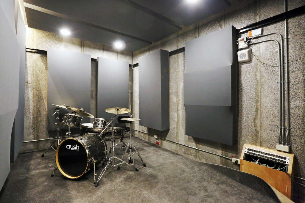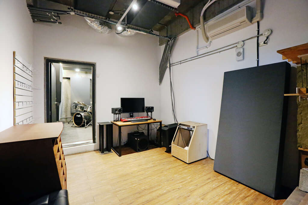 小錄製室(Studio B) :可錄製爵士鼓、各類樂器與歌唱,可容納4人。