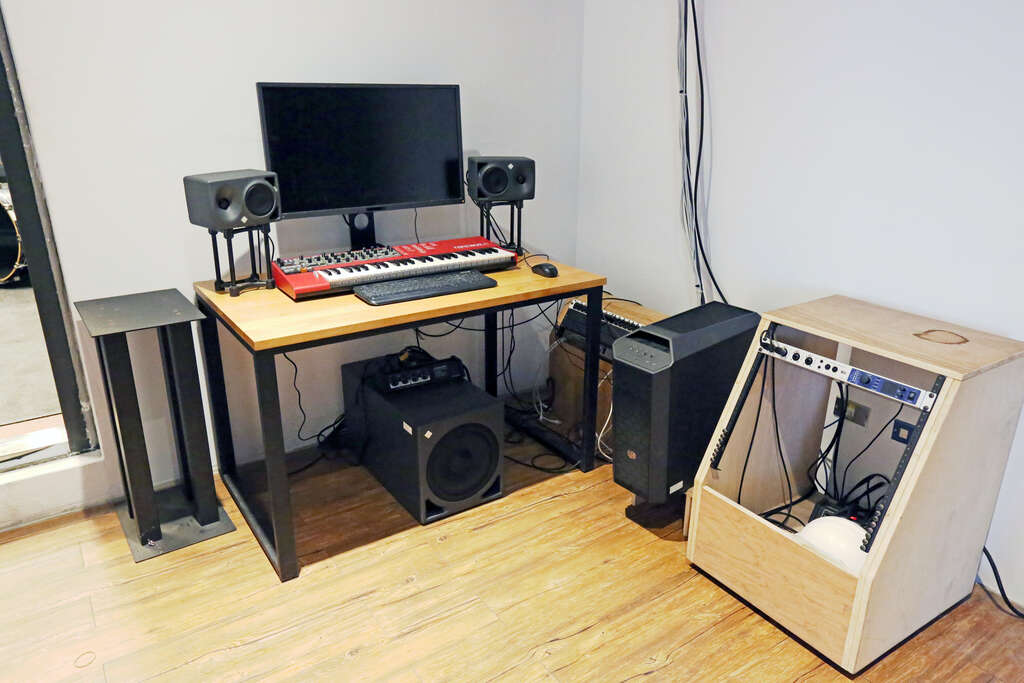 大錄製室(Studio A):可錄製管樂重奏、數位電鋼琴、爵士鼓、各類樂器與歌唱,可容納8人。
