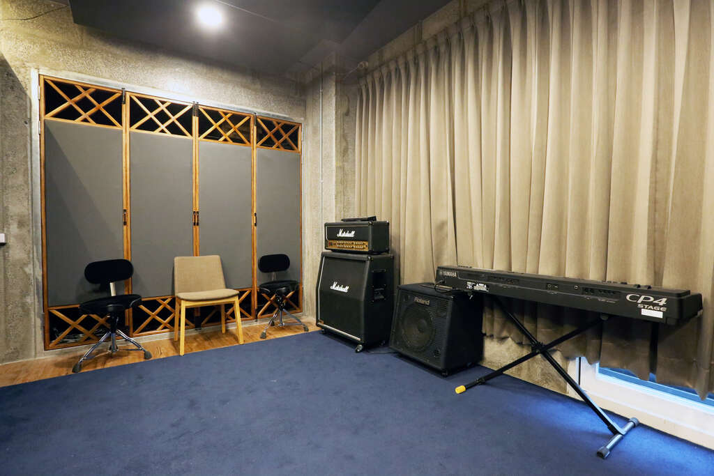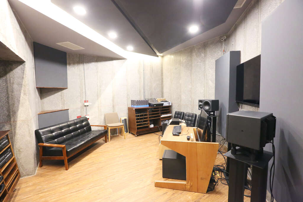 小錄製室(Studio B) :可錄製爵士鼓、各類樂器與歌唱,可容納4人。