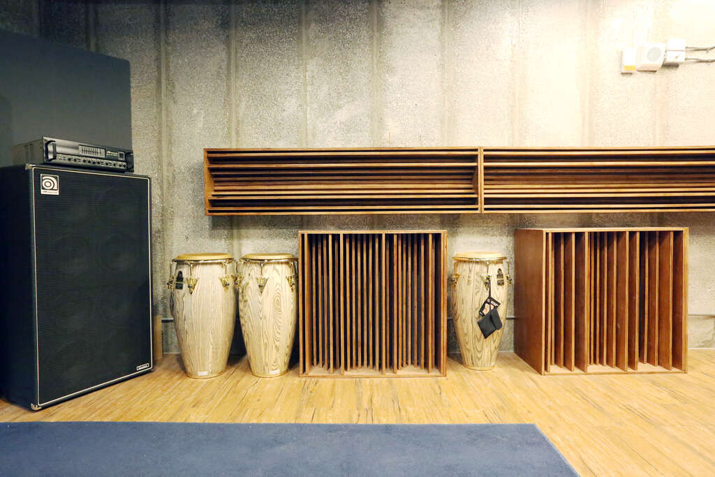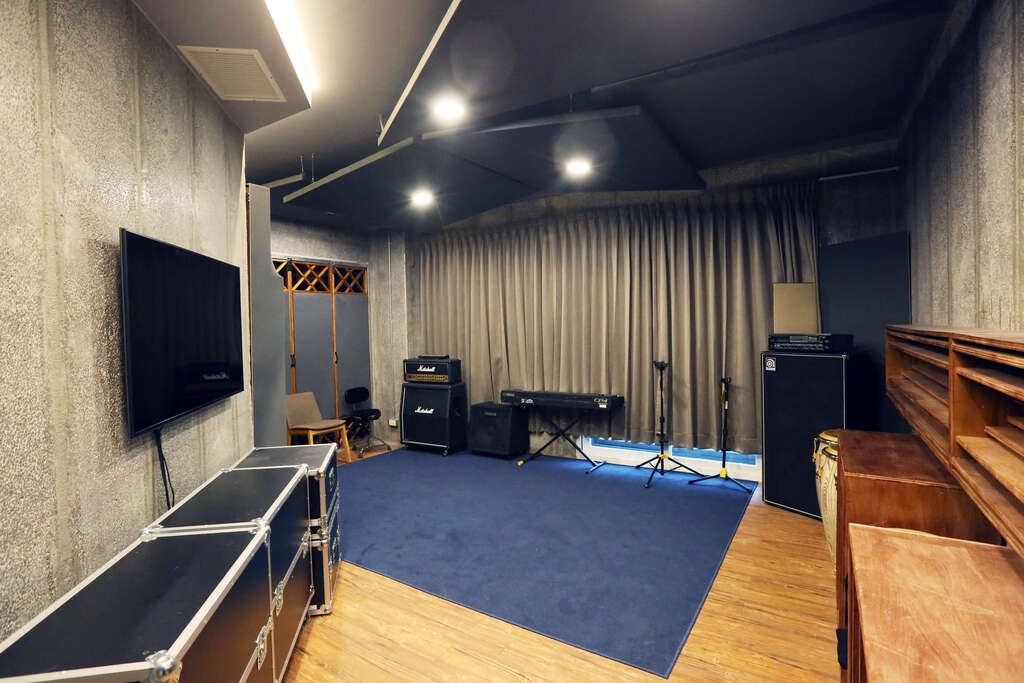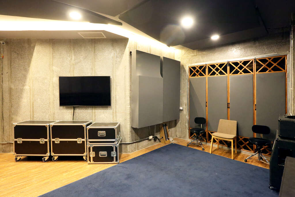 大錄製室(Studio A):可錄製管樂重奏、數位電鋼琴、爵士鼓、各類樂器與歌唱,可容納8人。